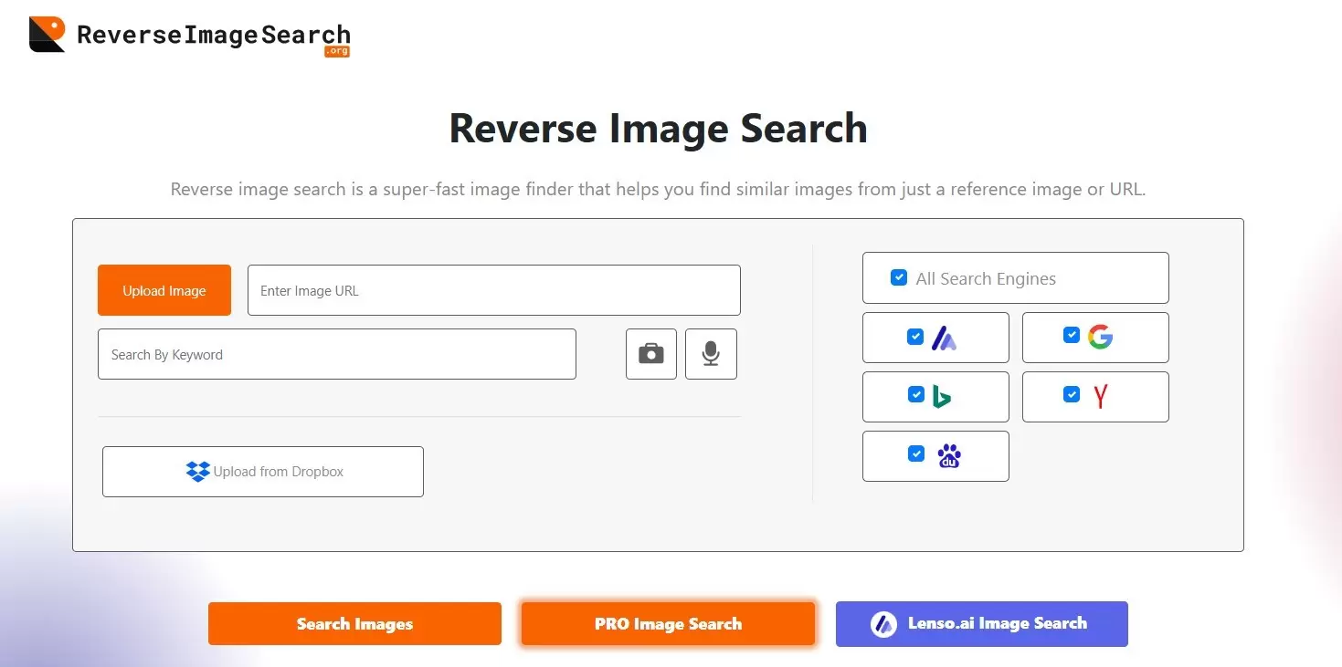 ReverseImageSearch.org is another outstanding platform for finding similar images with maximum precision. Its image search tool is very similar to DupliChecker as it also fetches search results from multiple search engines and shows all of them to users.